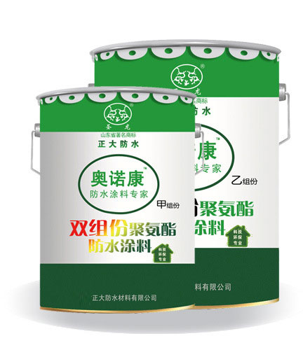 “奧諾康”牌雙組份聚氨酯防水涂料屬于雙組份化學反應固化型防水涂料,其中甲組份是由聚醚和異氰酸酯縮聚得到的異氰酸酯封端的預聚體,乙組份是由增塑劑、固化劑、增稠劑、促凝劑填充劑組成的彩色液體。使用時將甲、乙兩組份按比例混合均勻,涂刷在防水基層表面上,經(jīng)常溫交聯(lián)固化,形成橡膠狀彈性涂膜,從而起到防水作用。